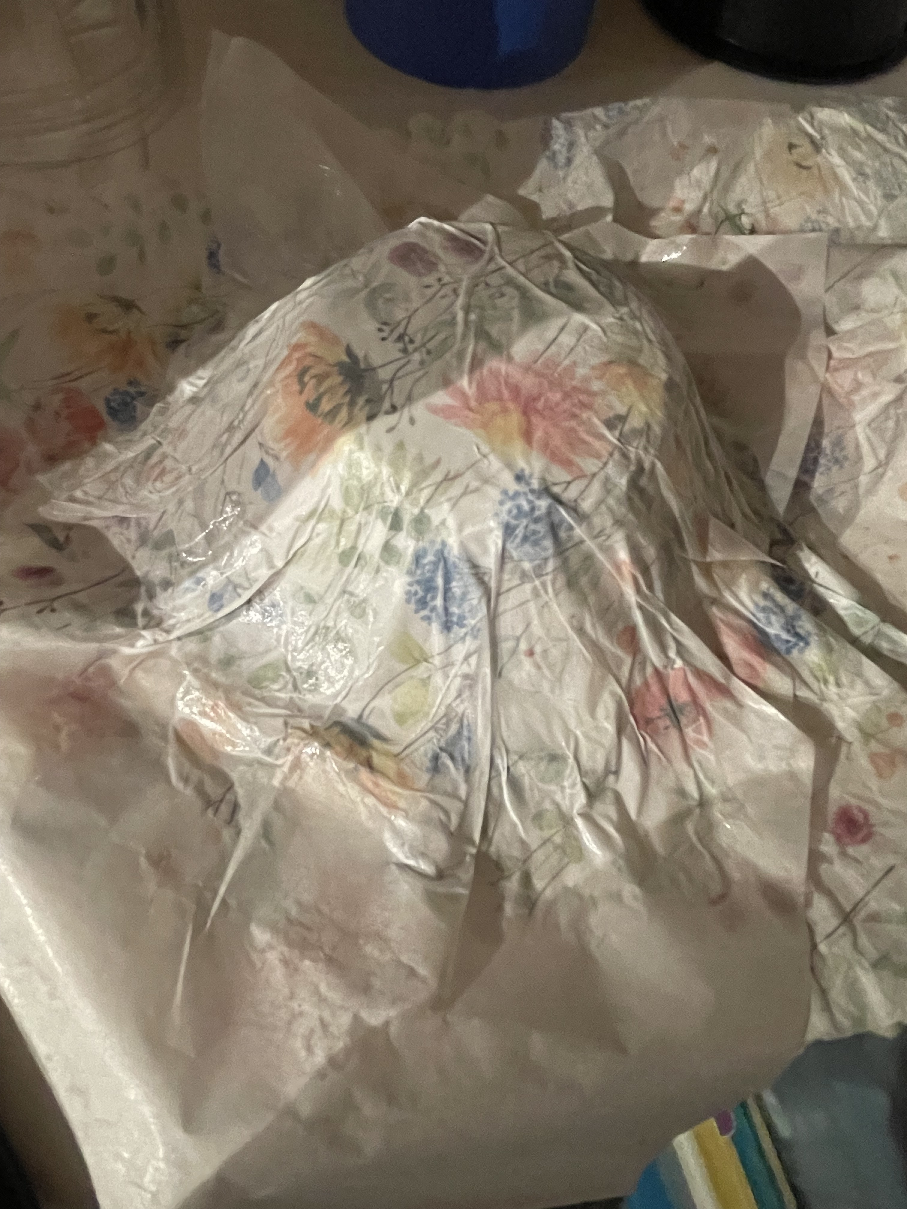 If you would like, you can let the tissue paper/napkins dry between sheets. I personally did not and it turned out good. Overall drying time….I let it dry overnight. The next day I cut the access paper off and touched up if needed.
