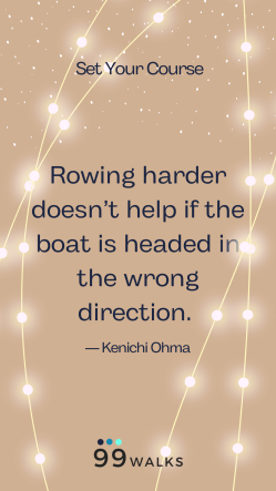If your boat is pointed the wrong way, no amount of rowing will get you to where you want to go and it’s even worse when you misidentify your goal. You’ll row your heart out, only to find that you’re in the wrong place. That’s a great way to destroy your motivation.