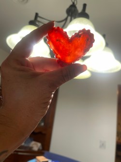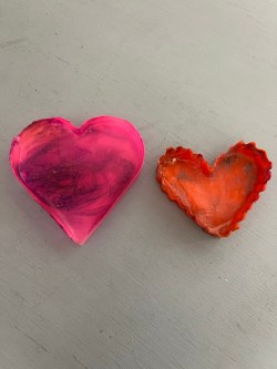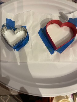 Pour your glue into the cookie cutters. You don’t want too little or too much. I made them 1/4” thick. See image above