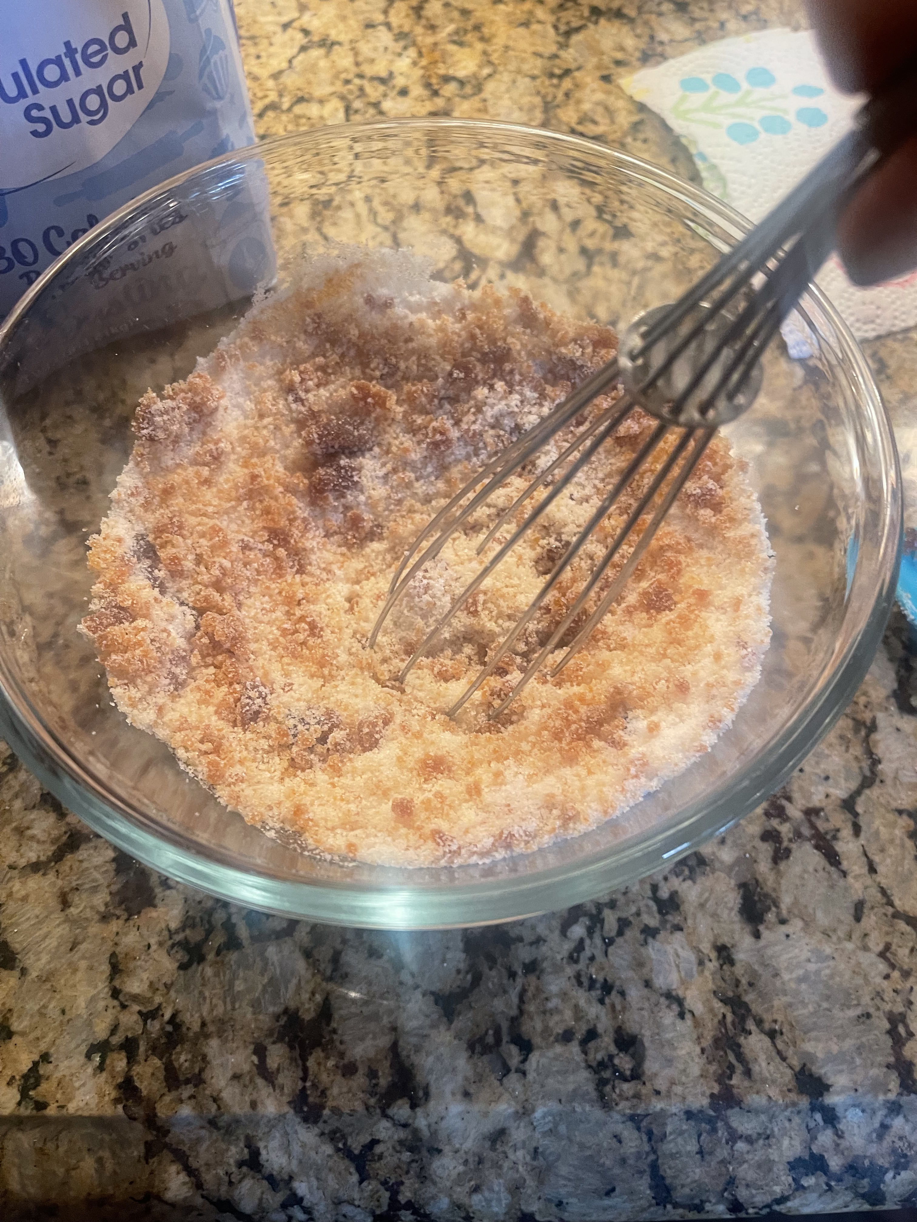 Step 1: Mix sugar & Molasses together till combined. Add 1 Tablespoon of Molasses for 1 cup of sugar, than add more Molasses as needed.