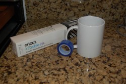 Preheat your oven to 420 degrees. Create your design in Cricut Design. Do not forget to mirror your image. I am using a Cricut Mug, they really are not that expensive. There is a way to make this using a regular mug BUT you would put coats of Polycrylic on the mug where the image will go. You put a coat of the Polycrylic on, then sand it, put another coat on, then sand it. Repeat those two steps about 5x’s. I did try this however the image was very faded. So I prefer using the Cricut mugs.