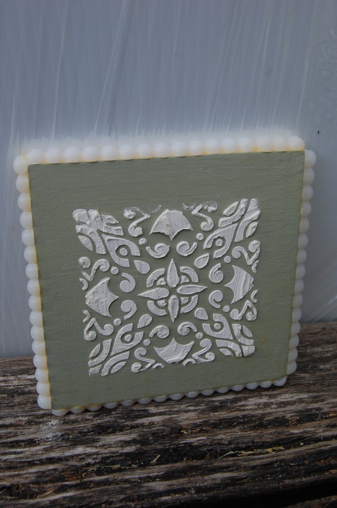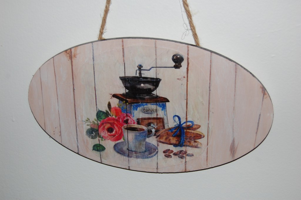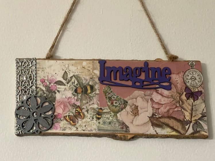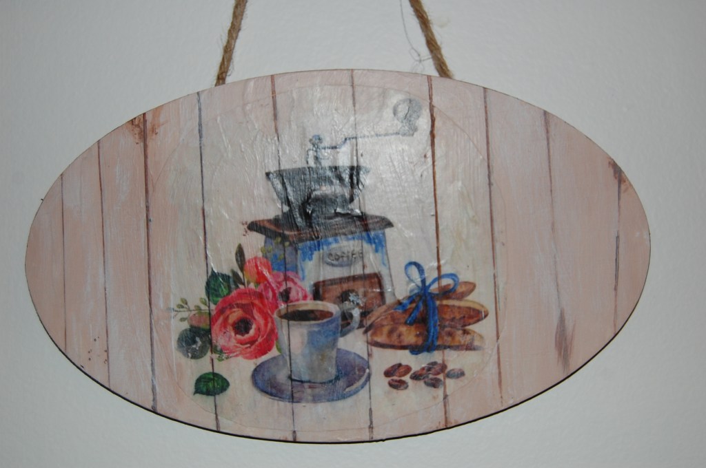 Decorative reversable sign. Decoupaged & added a little texture around the border.