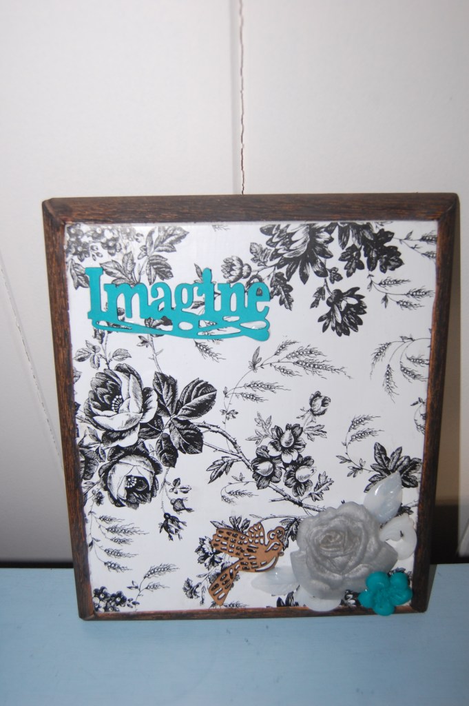 I aged paper using tea, got a free printable off of Pinterest & repurposed a thriftstore frame.