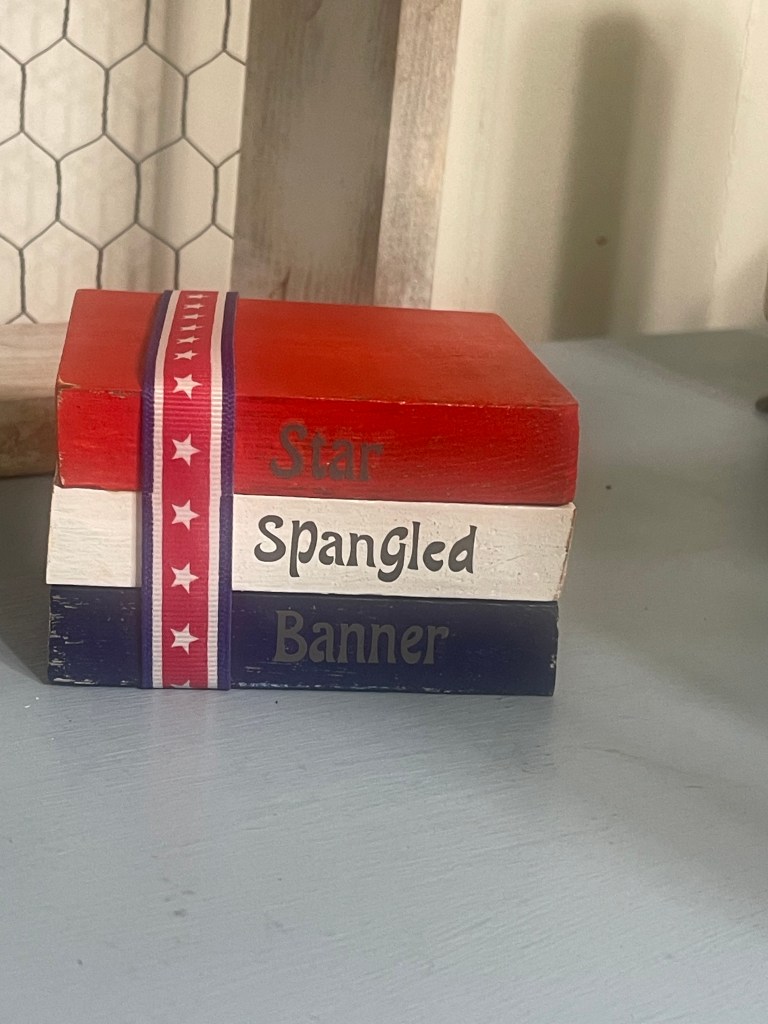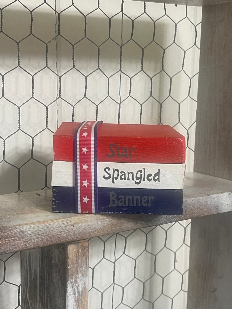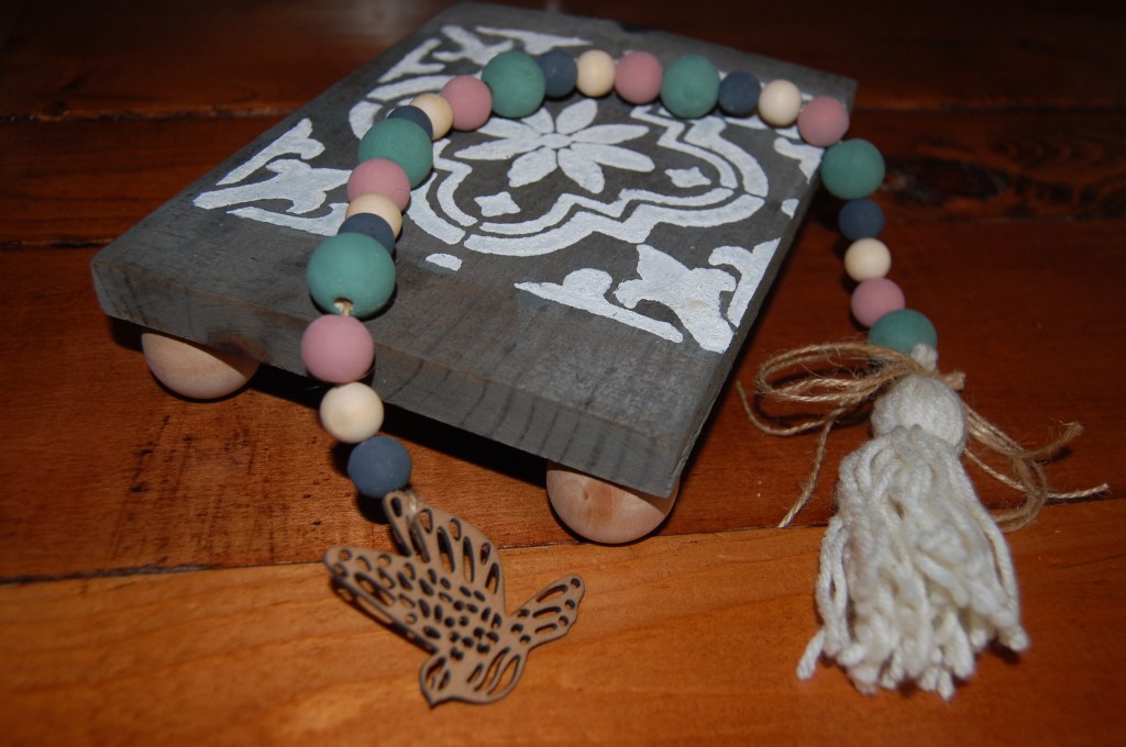 Wooden tray. Painted using white wash & gray wash techniques. Made the decals with the Cricut.