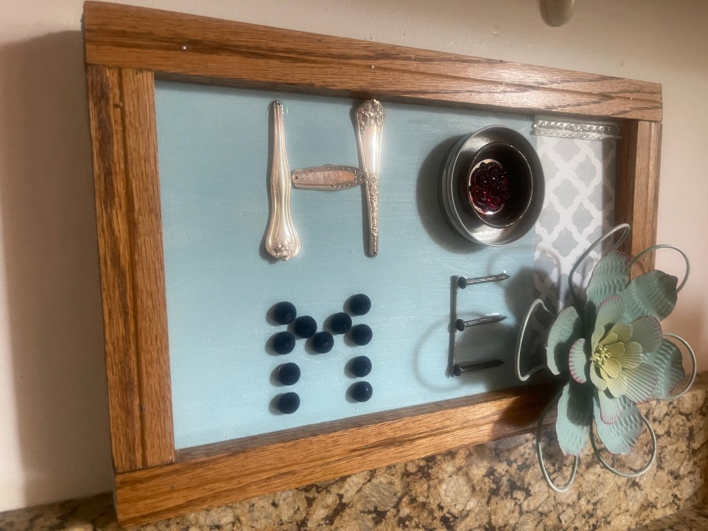 Upcycled wall art. I had some cut silverware I traded with another artist awhile back.