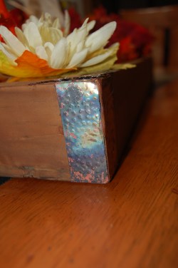 Burned wood using the Shou- Sugi-Ban technique than painted. Repurposed copper piping for the stem & leaf.